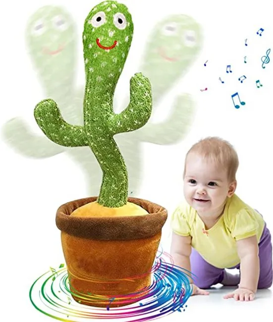 Singing and Dancing Cactus ToysThe cactus toy can sing multiple cheerful songs, bringing you a happy mood. At the same time, it can also dance. Every time it sings, and its body will also swing with the flashing of the lights, which is very interesting. Talking Cactus Toy. In addition to singing, dancing and glowing, our cactus toys can also record and repeat what you say. The sound is not your original sound, but by processing and repeating what you have said in a very funny tone, which brings you and your family great times of joy and fun. Multi-Functional and Fun Cute expression with big eyes, flexible body, funny dancing, and perfect shape. It is not just a toy that can amuse everyone, it can also be used as an ornament. Especially, it can attract babies attention very well using as an early education toy. Easy to Operate. Designed with a USB charging port and provide a charging cable, this toy is rechargeable, which saves you the trouble of buying and installing and replacing the battery. You just need to press the label button one the cactus, it can sing and press repeatedly to switch to the next song. Perfect Gift for All Ages. Cactus toy perfect accessory for home decoration. It‘s the best idea for a birthday or holiday gift for kids, friends or family. You can record your birthday wishes and give it as a gift with voice to your friends or relatives, making it the most unique gift.